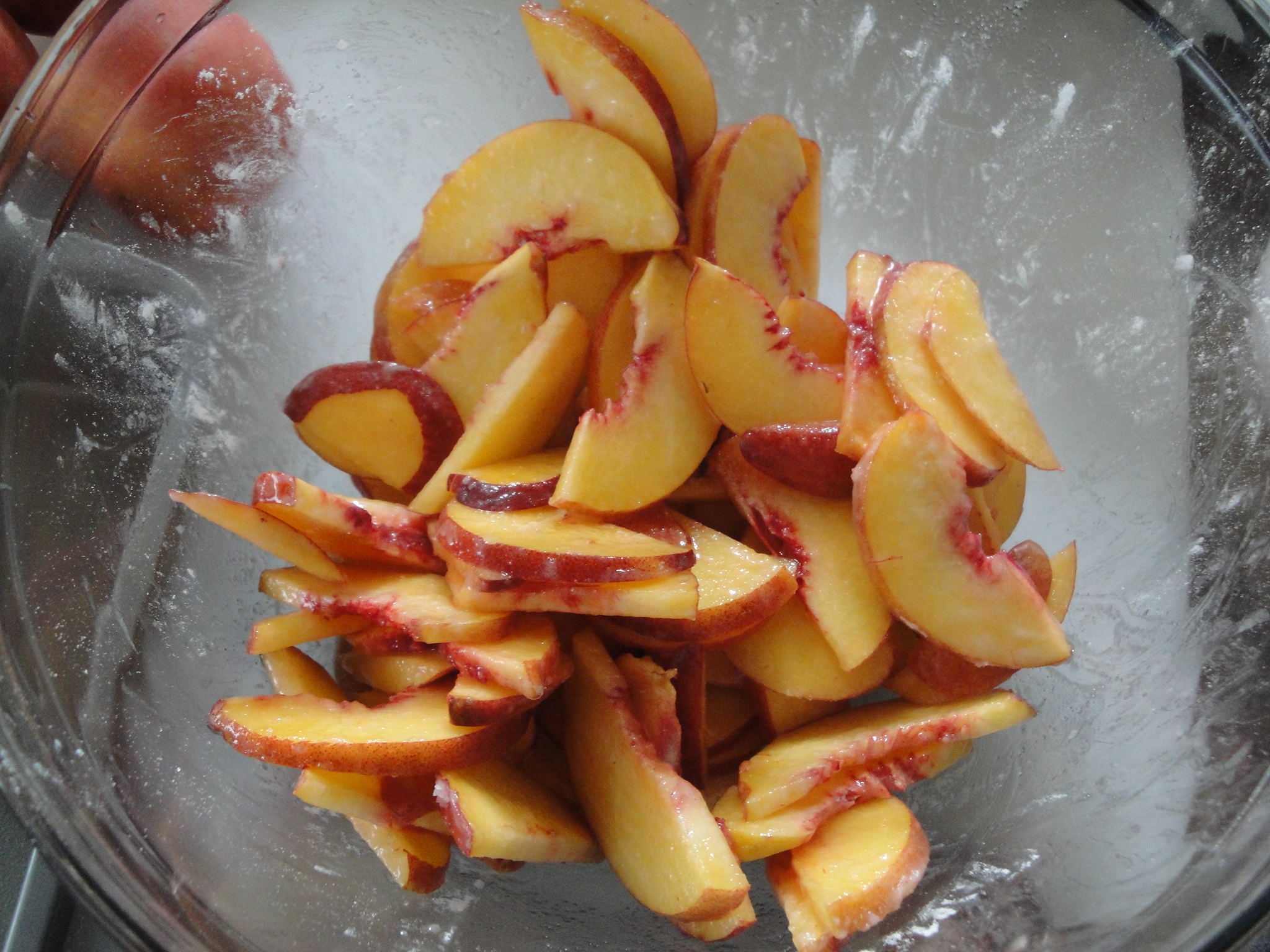 Bring water, sugar, and chopped peaches to a boil in a medium saucepan over medium-high heat. Reduce heat and simmer 3 minutes.