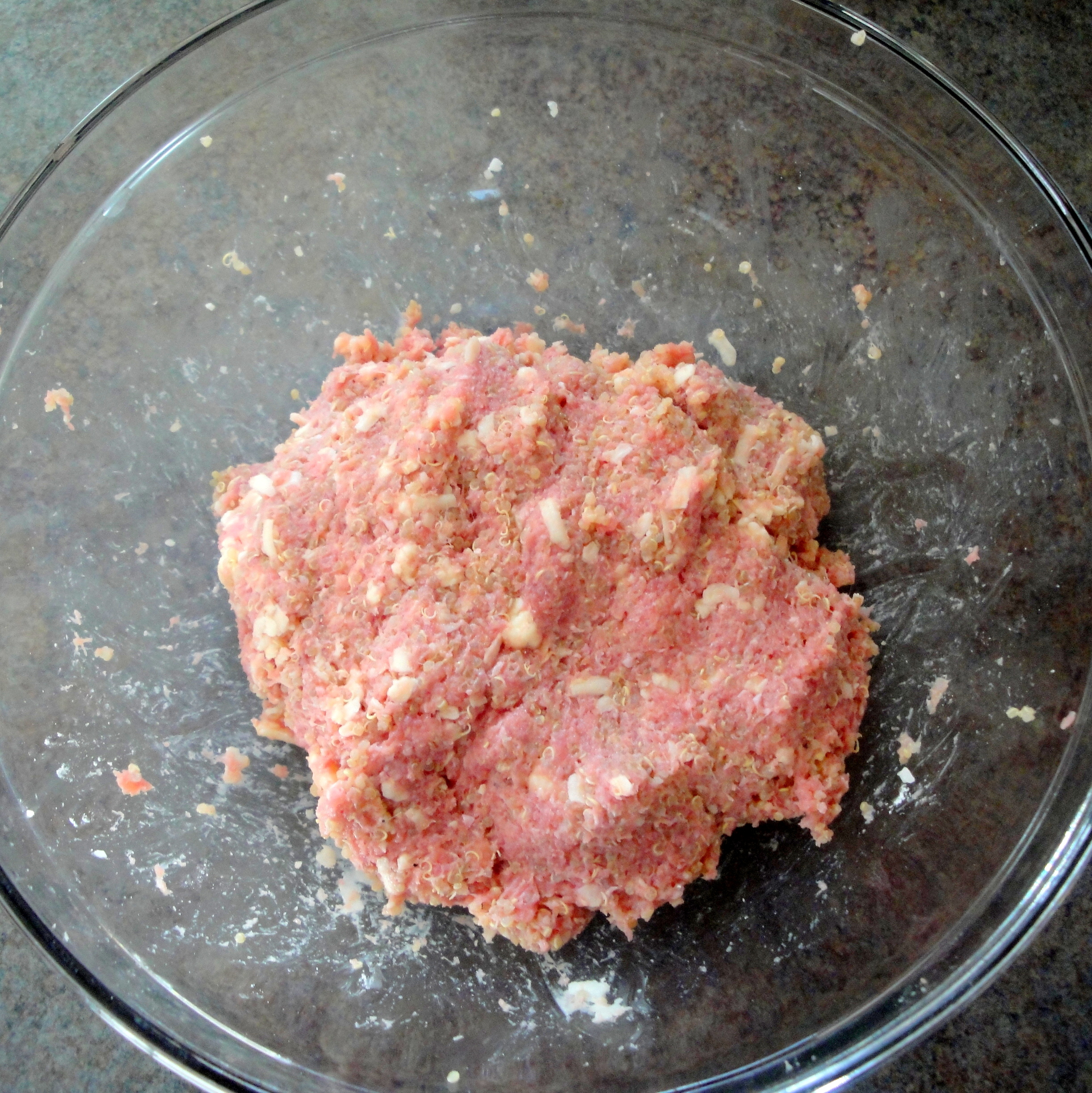 Preheat oven to 375°F. Combine quinoa, cheese, cornstarch, black pepper and sausage in a bowl.