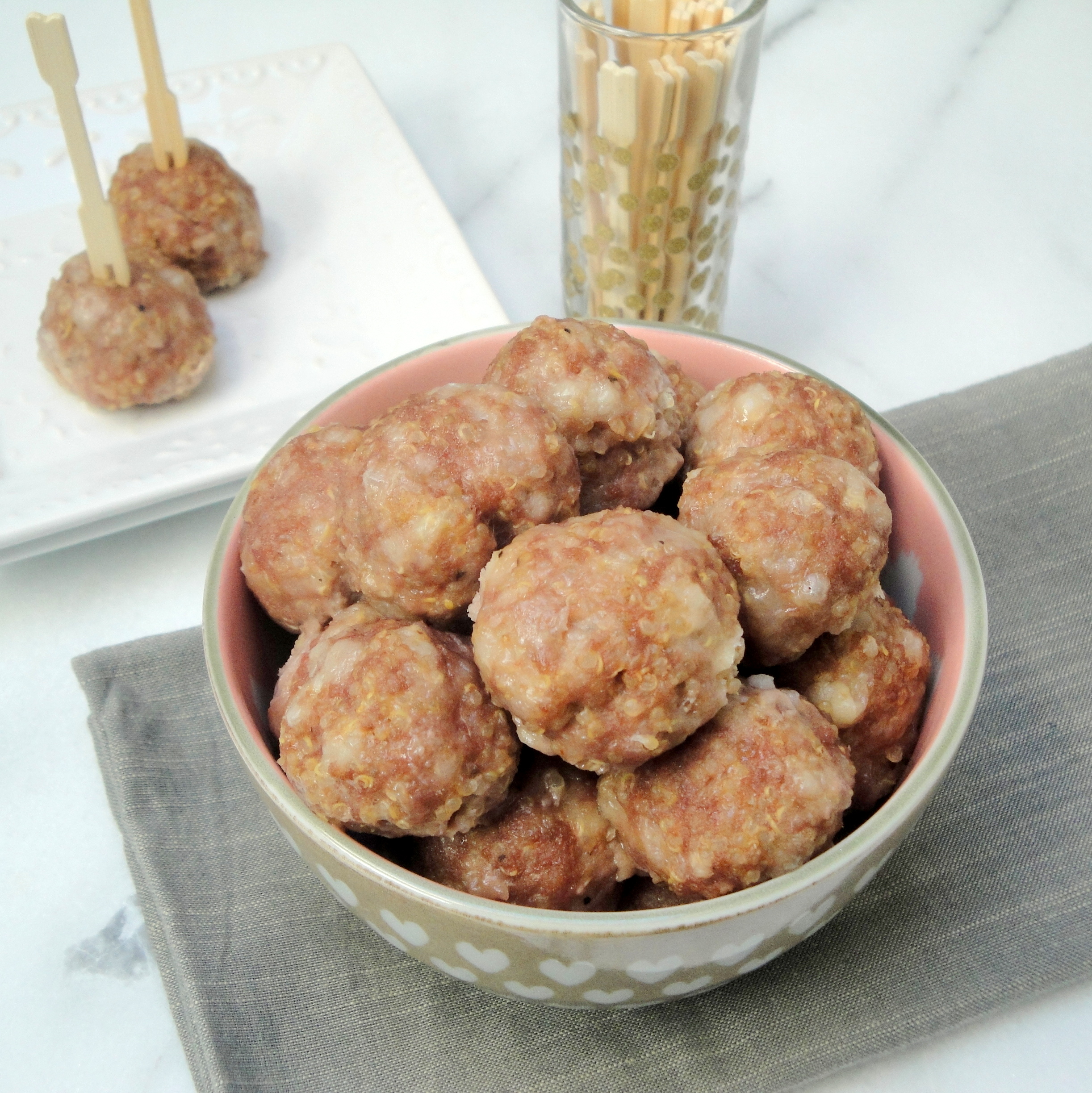 Sausage, cheese, and quinoa make up the base of these bites which are perfect for a Thanksgiving appetizer. Instead of baking mix, these balls have cooked quinoa which is so much healthier than some floury mix. Granted, baking mixes are super simple and easier to throw into a bowl than cooking up a batch of quinoa but it only takes fifteen minutes for quinoa to cook so you can do it ahead of time and still have some leftover for another dish later. Plus, quinoa is so much better for you! The quinoa actually adds a bit of texture to these sausage balls, a bit of a pop, if you will. I haven’t tried the sausage balls made with baking mix but I don’t think I need to. I’m perfectly happy with these little guys and I bet you will be too!