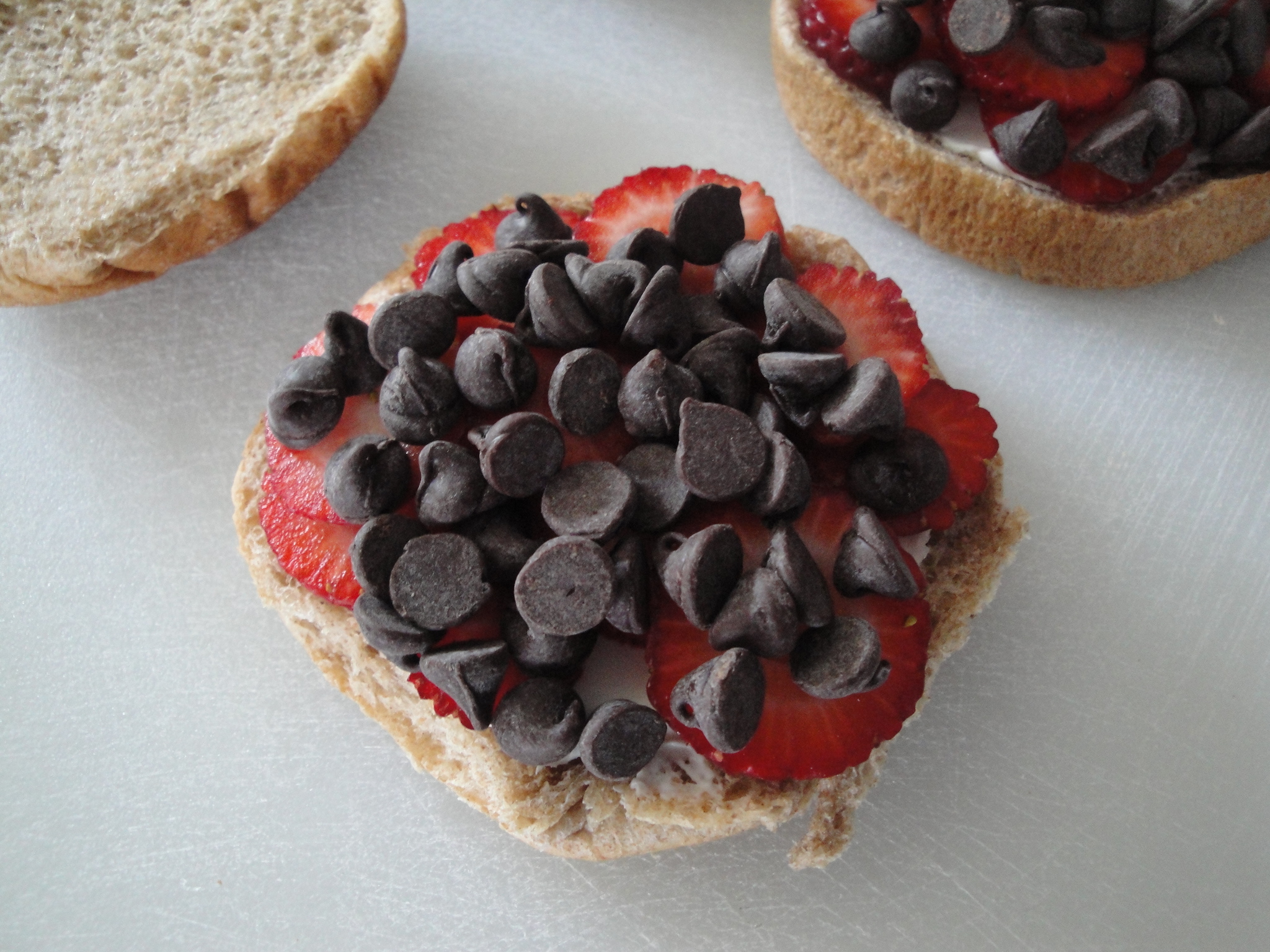 Since then, I’ve been craving strawberries and bought a pint earlier this week that never seems to end. Looking around my kitchen and noticing some whole-wheat buns that I probably wouldn’t finish and a few ounces of cream cheese that I had nothing to eat with, I decided to make a Strawberry-Chocolate Paninis using my sweet, sweet strawberries as the star of the show. Cream cheese is spread on whole-wheat bread and topped with slices of fresh strawberries and semi-sweet chocolate chips before being smooshed and toasted in a panini press. The cream cheese provides the slightest bit of tang to balance out the sweetness from the strawberries and chocolate. Any kind of bread will do here (like sourdough or French) and dark chocolate could easily be substituted too. My ingredients below made two sandwiches but you can easily double everything to make more. This is a nice little dessert panini that’s perfect for when plain strawberries just won’t do the trick. I mean, who doesn’t like strawberries and chocolate?