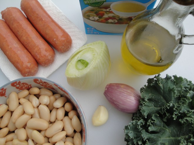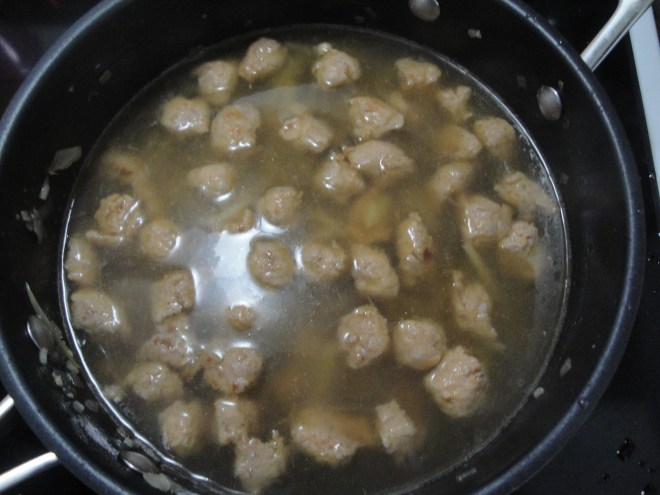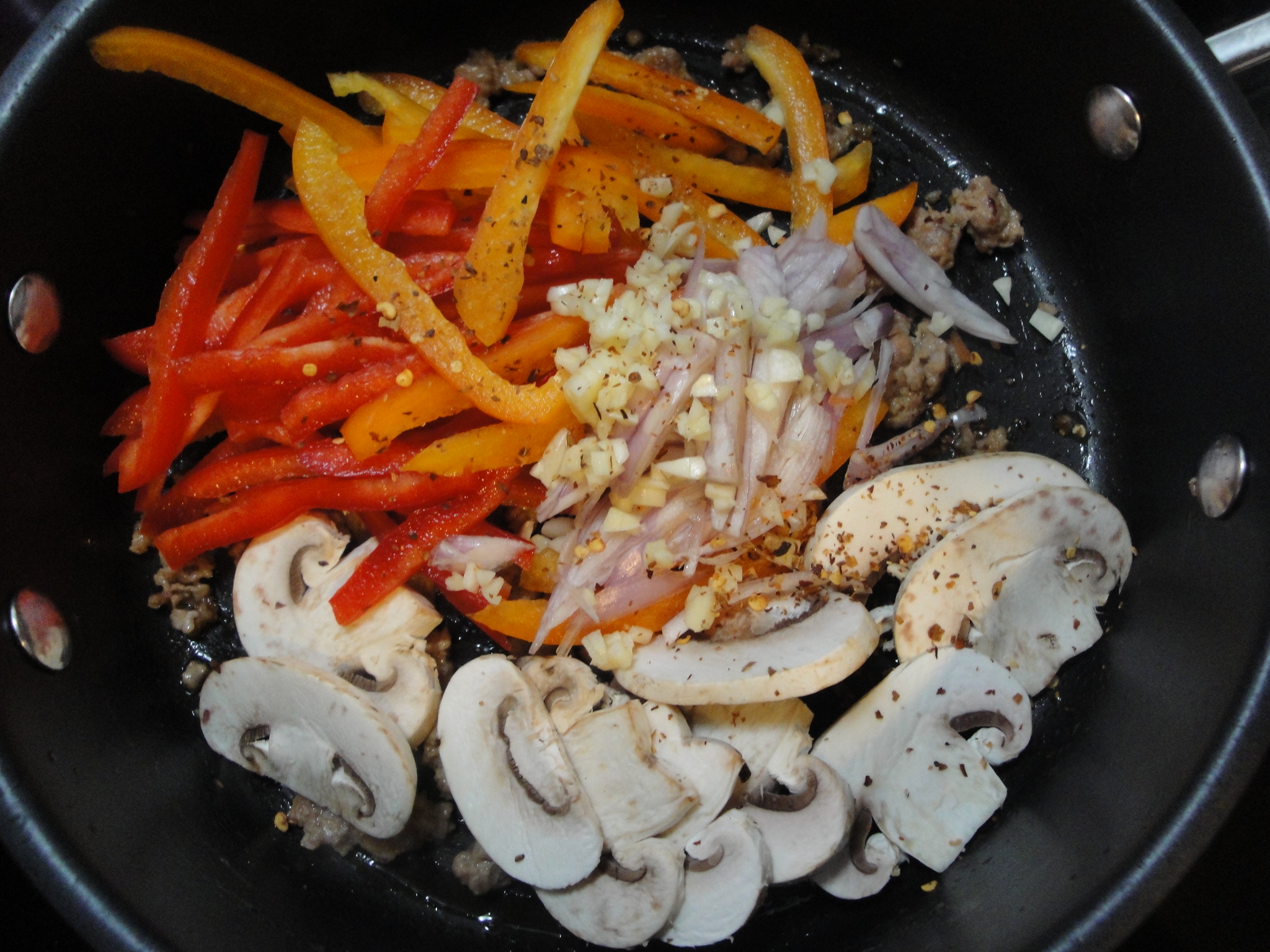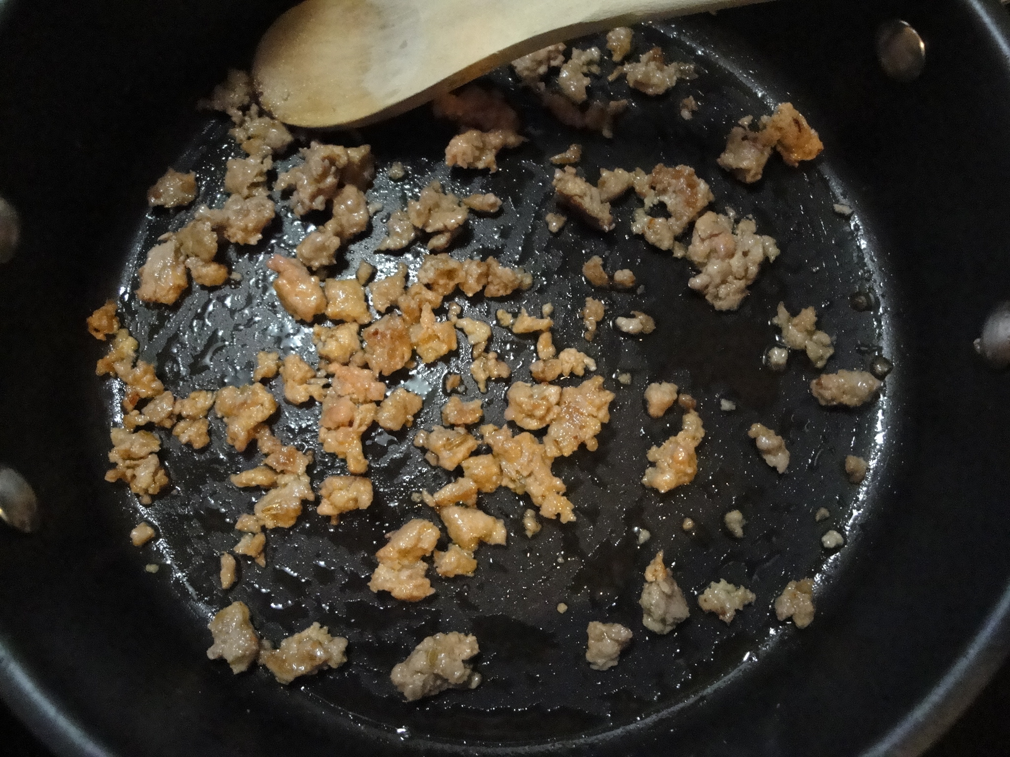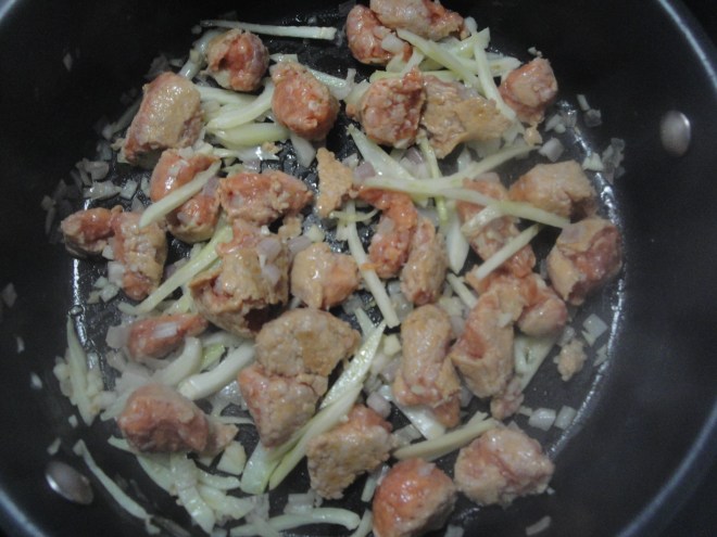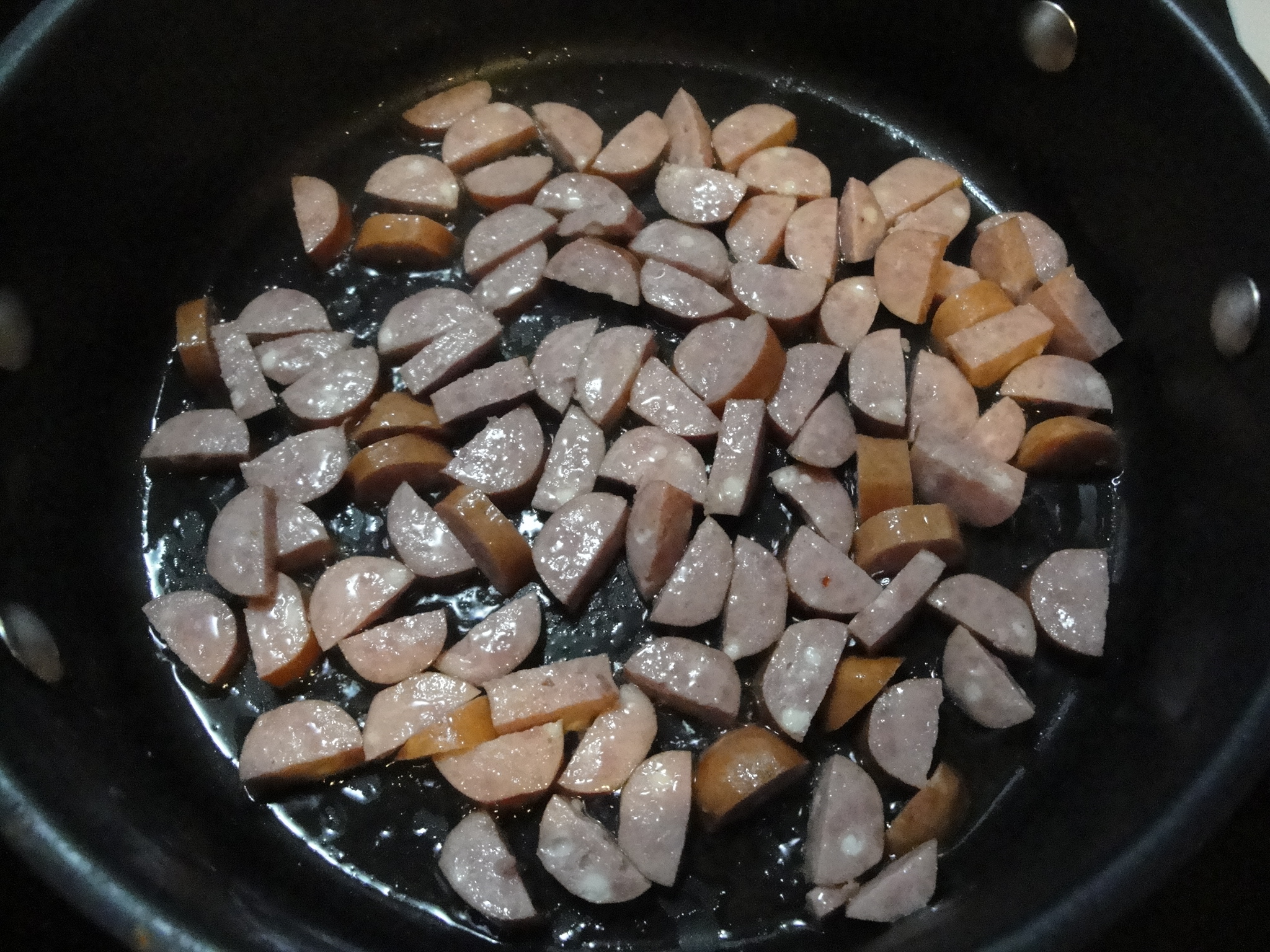 Cook chopped sausage in canola oil until browned.